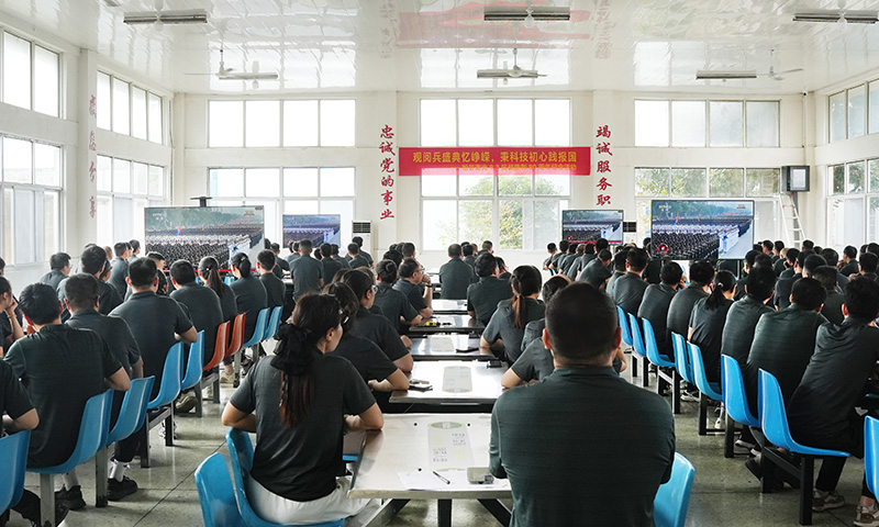 9月3日,紀念中國人民抗日戰爭暨世界反法西斯戰爭勝利80周年大會在北京天安門廣場隆重舉行。徐州松谷激光產業園的全體員工齊聚在會議室、生產車間、辦公室、餐廳等場地,莊重端坐,神情專注,共同觀看大會全程直播,認真聆聽和學習大會講話精神,向偉大勝利致敬,汲取奮發前行的強大力量。